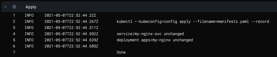 Here you will see the manifests in the Service Definition Manifests section applied using kubectl as a single file, manifests.yaml.