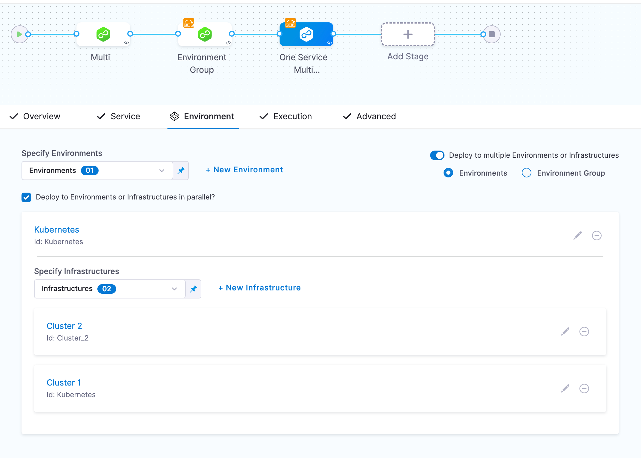 For details on Deploy to Environments or Infrastructures in parallel?, go to deploying in parallel or serial below.