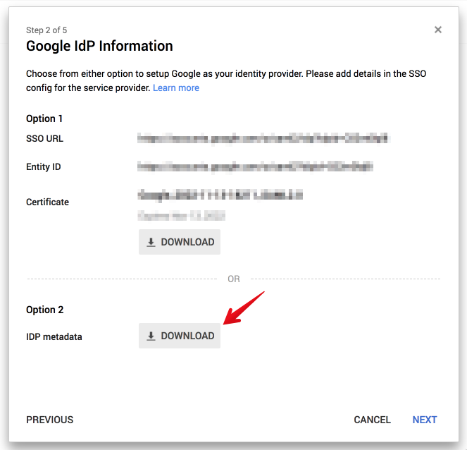 5. Use Option 2 to download the IdP metadata, and copy and paste for later use in Split.