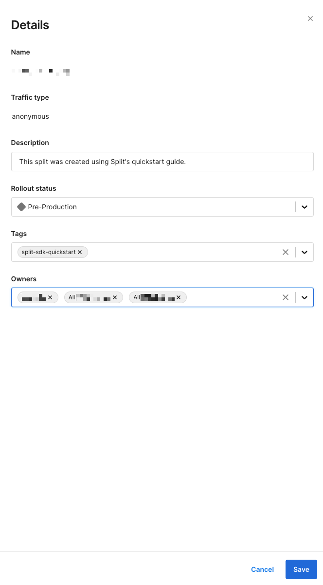 In addition to tags, owners allow you to organize and manage feature flags, segments, and metrics across the Split user interface.