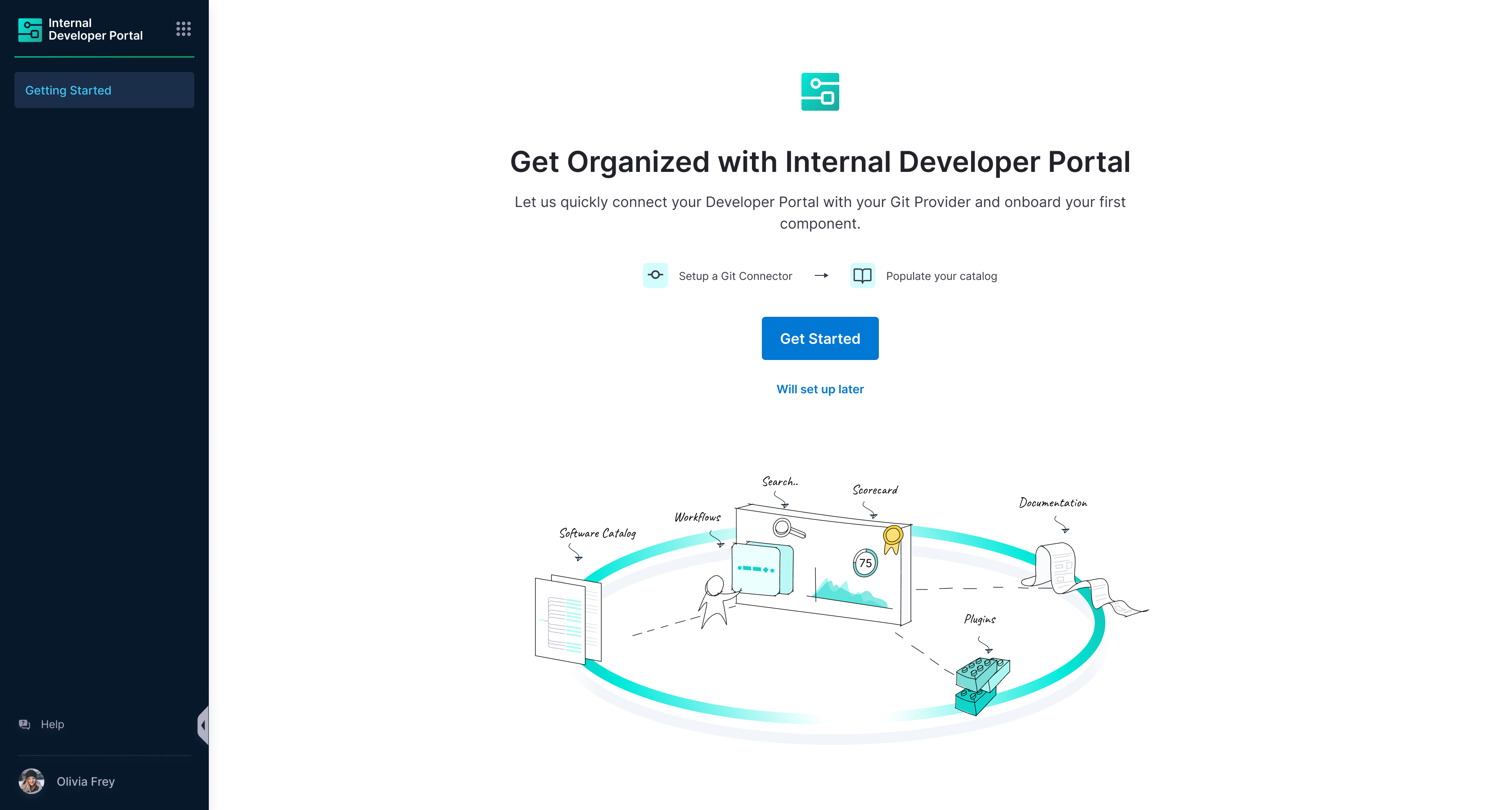 User can navigate to the IDP homepage to get started. Catalog will start showing up software components once the asynchronous operation is completed.