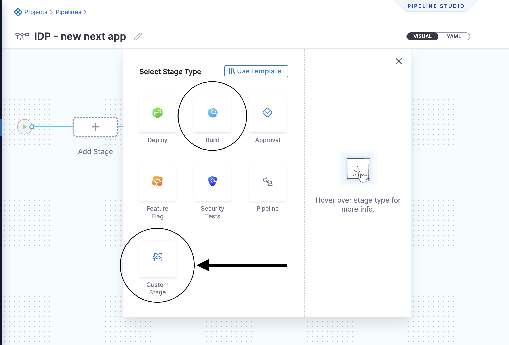 Create a Build or Custom stage