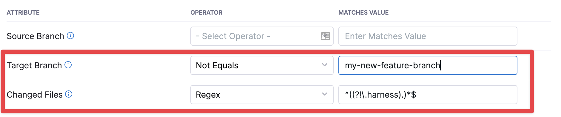 You might also want to set the Changed Files field to exclude the.harnessfolder. This will ensure that updates to your Harness configs don't trigger unwanted builds.