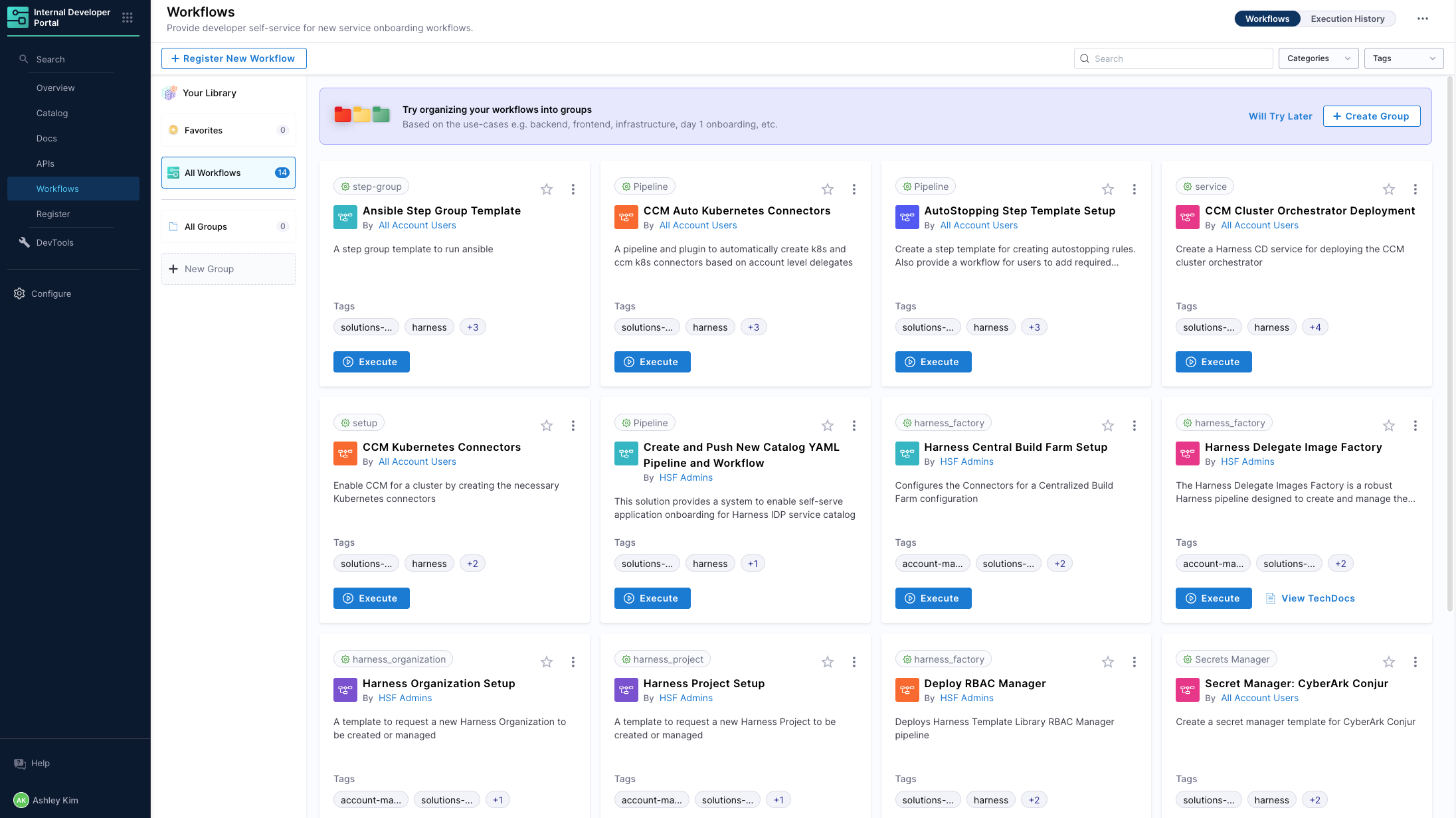 In order to deploy a workflow or look at the catalog to see what workflows are available go to IDP → Workflows.